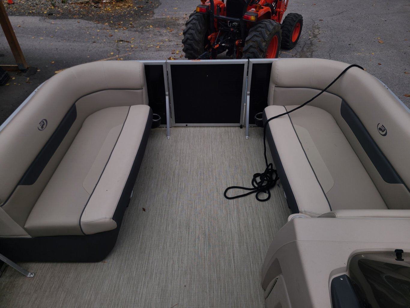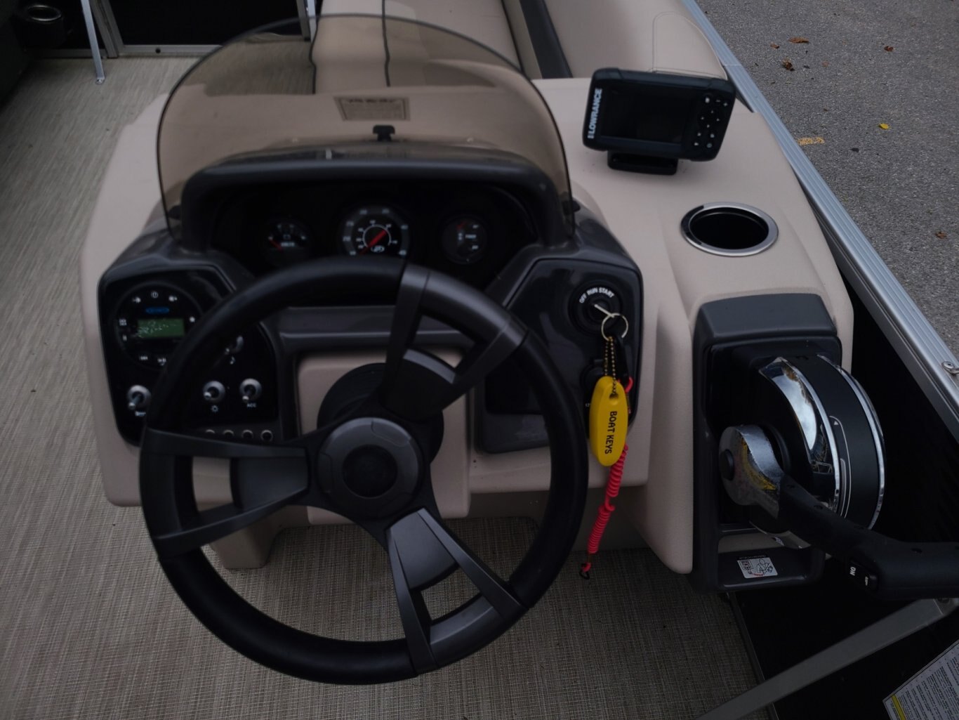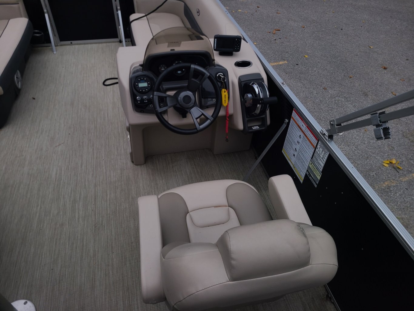 This barely used pontoon offers exceptional. In like new condition with a fish finder, rear snack table, full instrumentation, AM/FM/Bluetooth stereo, tilt steering, upgraded captains chair with seat slider, and plush upholstery upgrade . With only 26 hours on the engine, it's not even broken in yet. Consignment sale. Sorry, trailer is NOT included.