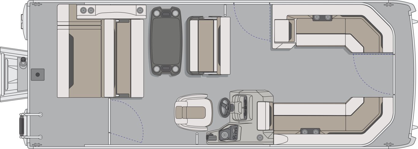 - RL design including captain passenger seat, sundeck with 2-position adjustable backrest, large snack table, and storage under all seats