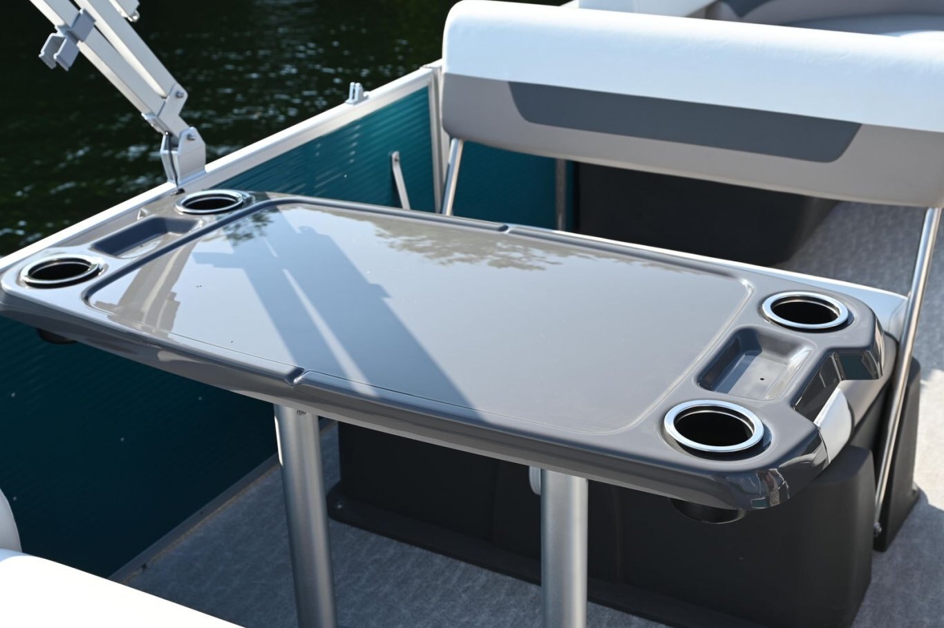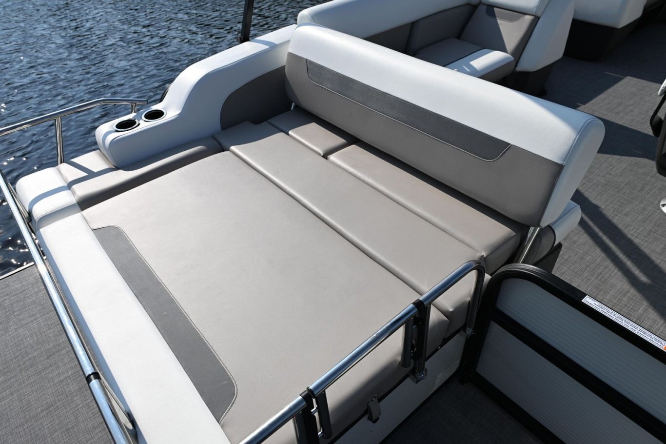 RL design including captain passenger seat, sundeck with 2-position adjustable backrest, large snack table, and storage under all seats