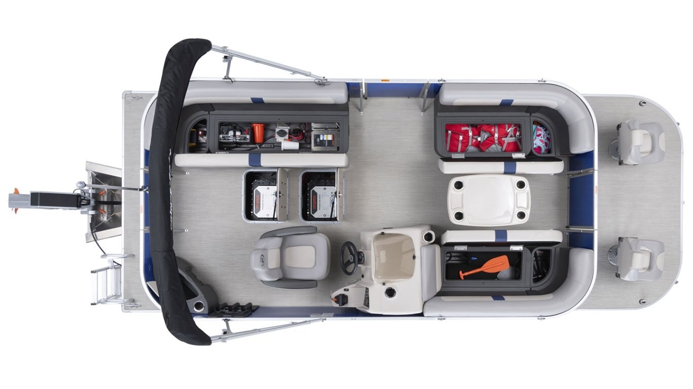 • Graphic package includes: Blue metallic stripe all around the pontoon